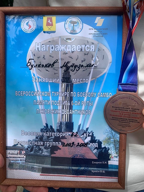 Поздравляем нашего студента из 115 группы, Булкакова Муртазали, занявшего 3 место на всероссийском турнире по боевому самбо, посвященном подвигу 6-ой роты псковских десантников! Мероприятие состоялось в с.Александровское 25 мая