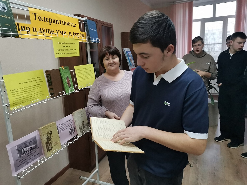 По окончании мероприятия был проведен обзор книжной выставки «Толерантность: Мир в душе, уме и сердце» с рекомендацией произведений по данной тематике.