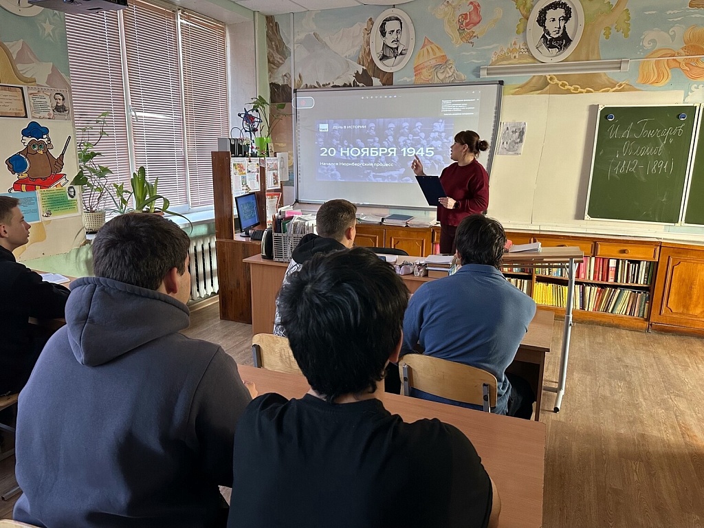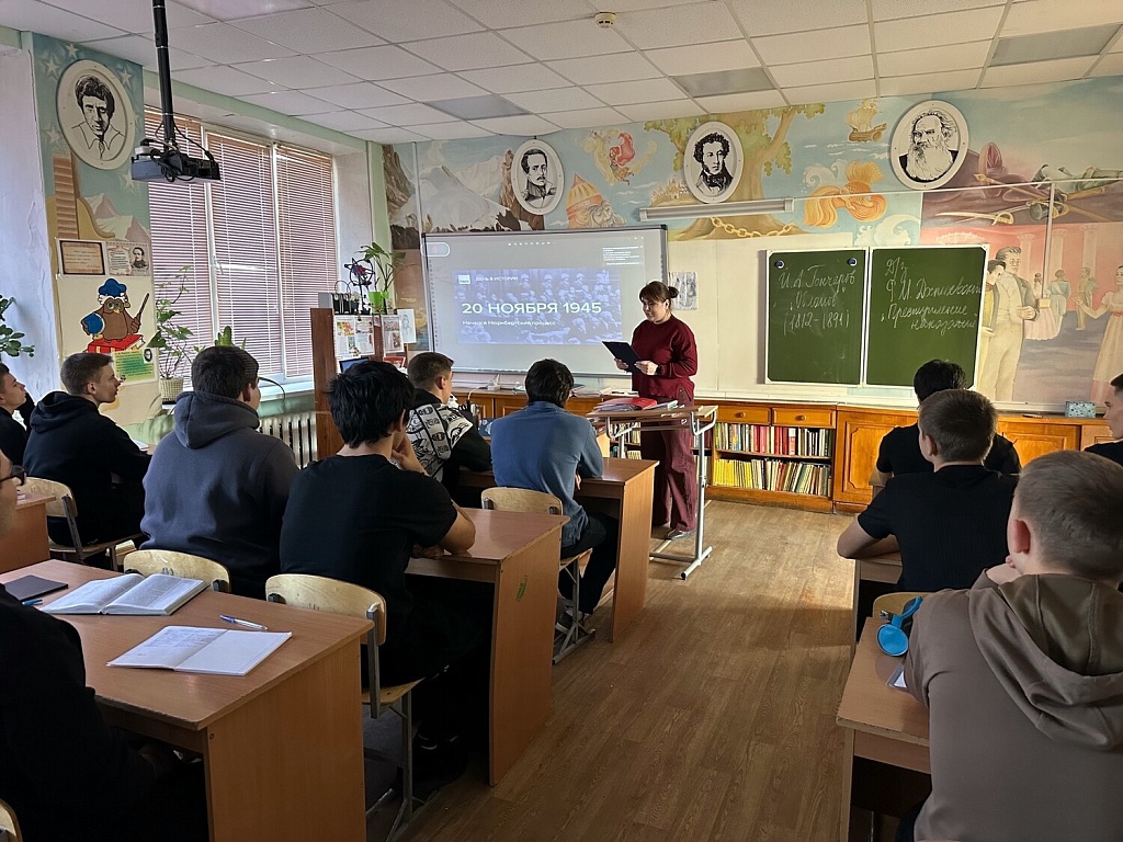 20 ноября — особенный день в истории, который напоминает нам о важности справедливости и человечности. Именно в этот день в 1945 году начался Нюрнбергский процесс — первый в истории суд над военными преступниками Второй мировой войны. Сегодня в колледже советник директора по воспитанию провела для студентов урок истории посвященный этой дате, она рассказала о Нюрнбергском процессе, его значением для мирового правосудия и важностью соблюдения прав человека, подготовила интересные материалы, включая документы того времени и видеозаписи, что позволило ребятам глубже погрузиться в тему.