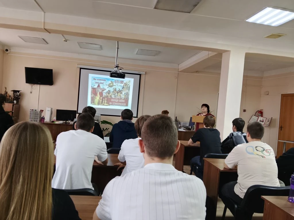 Чтобы вспомнить о мужестве и подвиге наших солдат в Афганистане, на литературно-музыкальную композицию «Наша память и боль», в библиотеку колледжа были приглашены студенты 123 и 223 групп.